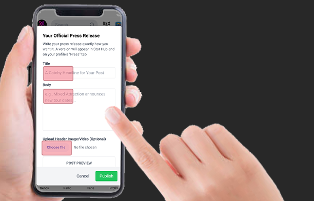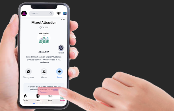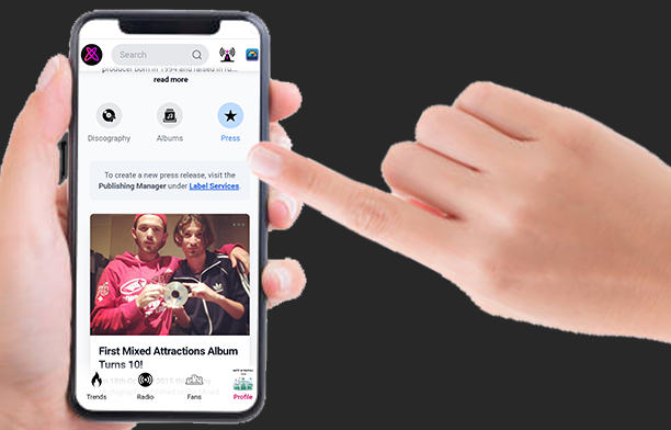 Navigate to your Artist Profile and click on the ‘Press’ section. This section displays a feed of all your Press Posts.