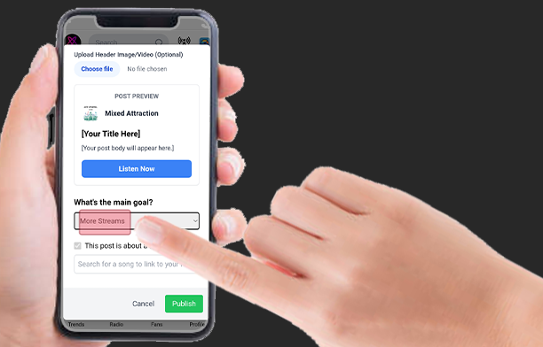 Why do this? Linking a song creates a direct Call-To-Action (CTA) within the post. Readers can transition instantly from reading your story to streaming, tipping, or saving your track. These actions are the fuel for chart positioning.