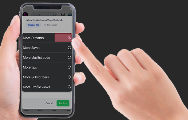 Pro Tip: For most new releases, selecting “More streams” is ideal to drive chart position. However, for creative campaigns, you might select “More tips” and conduct a giveaway by choosing a winner from your list of tipping fans.