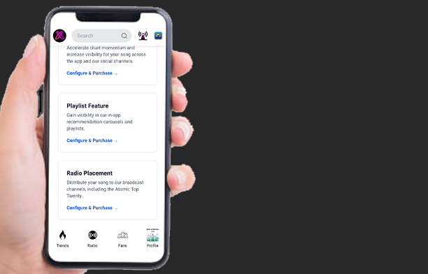 - Label Service (Paid): Use the Radio Servicing and/or Placement services (Press & Catalog Manager) to accrue exposure to new fans via Atomic Radio.